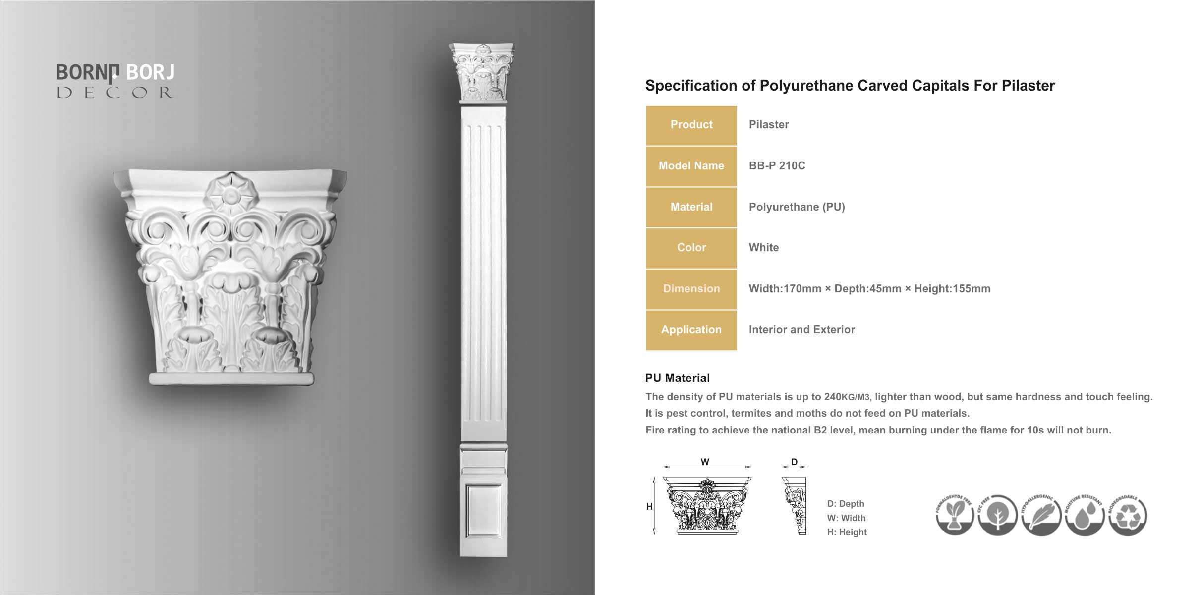 ستون آماده تخت پلی یورتان دارای سه بخش شامل: سر ستون Capital - ستون Pilaster - پایه ستون Base of a Pillar می باشد.